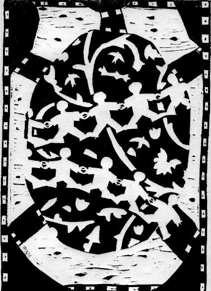 He crosses the first bridge and enters a town where his old friends are busy growing pig hearts on low trees. He feels a terrrible longing for acacias and maples and light green chestnut trees with light green chestnuts in them, so he walks back to his island over the second bridge. And out again over the third, back in over the fourth, and so on untill the sixth bridge. The bridges are in bad shape because the people in the cities do not spend money on bridges to places they never visit. In the other towns he finds the inhabitants as busy as in the first, piling up money, or paper, or bricks, or cattle, all day long. He travels for months and meets many old friends. They all know a lot about the future, but not so much about the past and surprisingly little about the present. They hardly remember him or the island, and none of them collects sounds or images. The Princess of Pregel, he hears, is well off and lives in a castle in the air just above the seventh town.