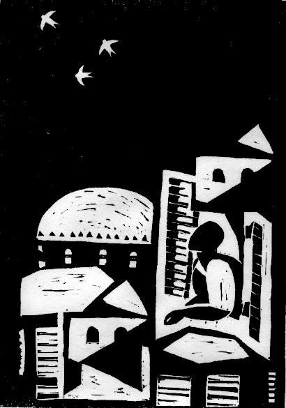 One sunny day in May, when he was already very old, while trying to fetch his mail he fell into the river. He couldn't swim, so he drowned. The river with rough kindness dragged the count’s body to his beloved island, where it was quickly covered by flowering weeds.Shortly afterwards, bridges 1, 2, 5 and 7 also collapsed. The island was first renamed and then forgotten altogether. But every year on April 29, small black swifts came to swerve and glide above the place were the count lay buried. They would shreek eeee-eeee-eeee! high in the sky, and there was always somebody, in one of the seven towns around the island, who would lean out of the window and think "that’s the most beautiful sound in the world" and wonder if there existed Another Being, in that town or anywhere else, who would agree with that.
